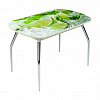 Столешница имеет размер 1 м 10 см, синхронно-раздвижной механизм “бабочка” позволяет увеличить ее еще на 30 см и увеличить количество посадочных мест. Материалы изготовления - ЛДСП, МДФ и закаленное стекло. В ассортименте варианты с цветным стеклом, с узором, с кожзамом, с фотопечатью и даже с искусственным камнем. Ножки могут быть гнутыми или прямыми, из хромированной стали или массива березы в одном из трех цветов - выбор комбинаций просто огромный.