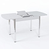 Раскладной кухонный стол со стеклом Стол Чикаго СТ МП 1100(1400)*680*750 Ноги прямые 02 гальваника (стекло Бежевое матовое цвет ВН) - практичный и современный предмет мебели, который благодаря большому количеству модификаций подойдет к любому интерьеру и будет долго служить вашей семье.